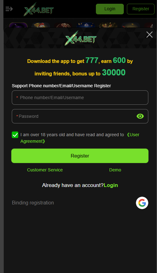 Once registered, users can access all features of X44 Game easily.
